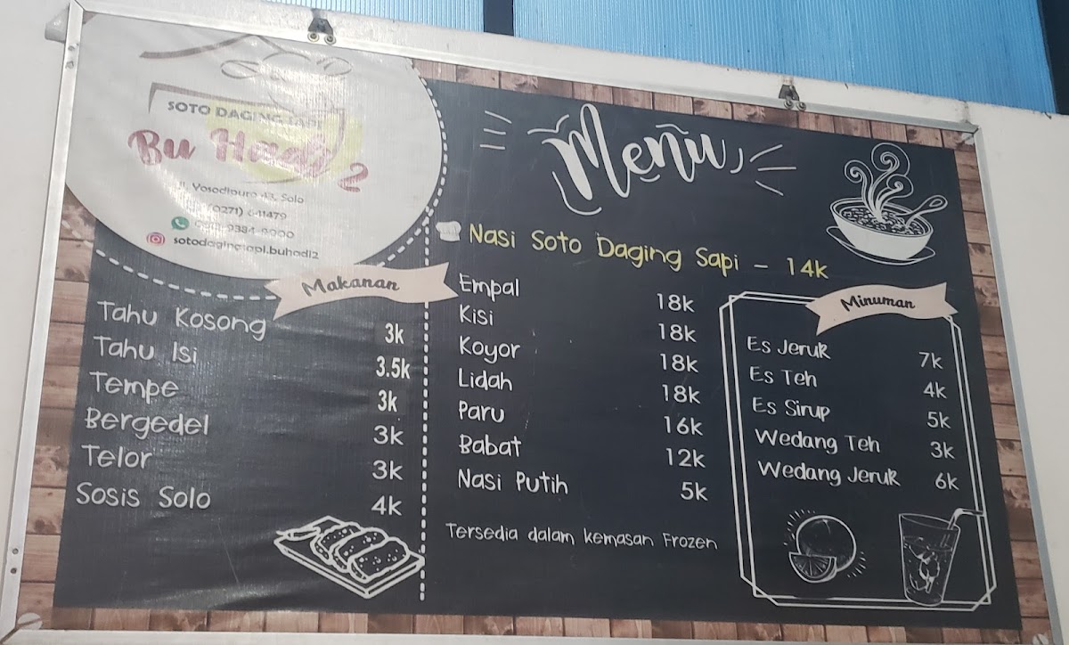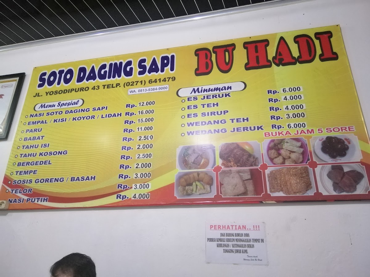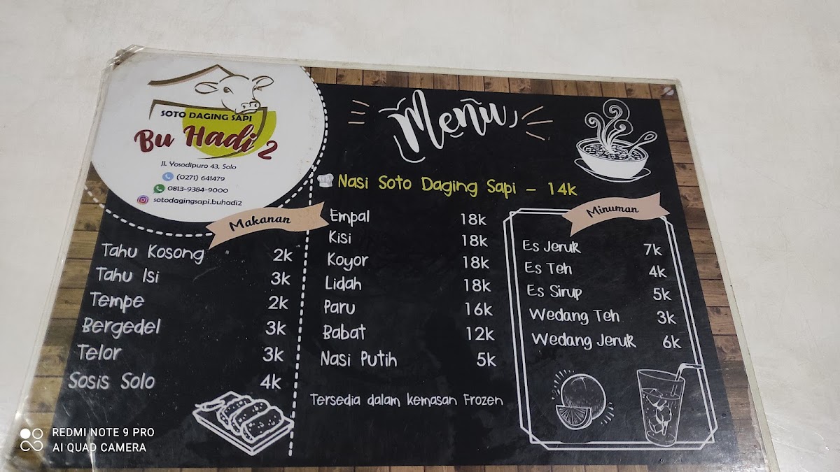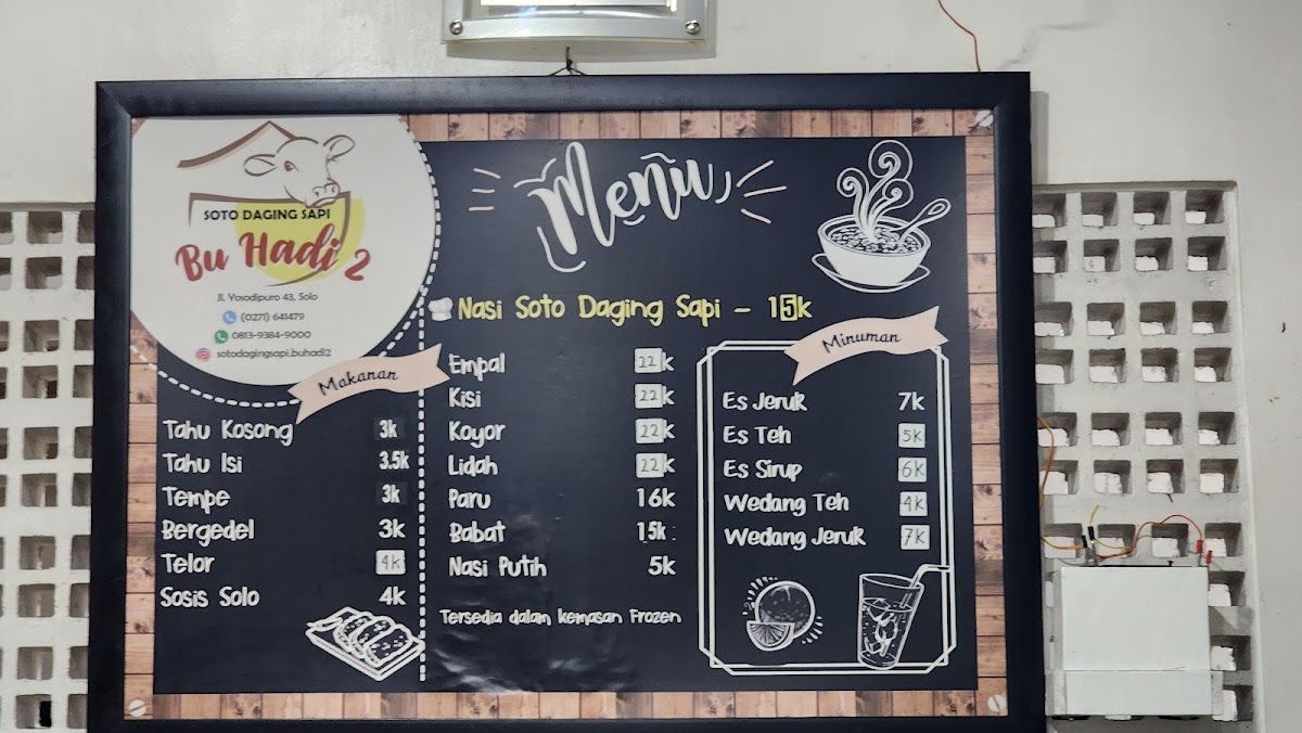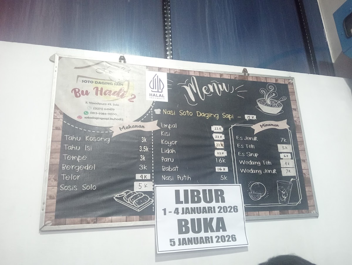 Soto Daging Sapi Bu Hadi 2 stands as a beloved culinary landmark in Surakarta, offering a timeless rendition of traditional Indonesian beef soto. Located on Jl. Yosodipuro, this humble eatery specializes in a flavorful bowl of clear beef broth enriched with tender slices of beef, accompanied by generous servings of rice. What sets this place apart are its varied side dishes like empal, kisi (beef cartilage), koyor, and paru goreng (crispy beef lung), allowing diners to customize their experience with different textures and flavors. Customers frequently praise the comforting and refreshing taste of the broth, alongside the crispy, savory delights of the fried tofu and tempeh, which hold a special local twist. The affordable prices complement the generous portions, making it a perfect spot for both locals and travelers seeking authentic, hearty Indonesian comfort food. Whether you’re winding down your day or craving a warm, satisfying meal, Soto Daging Sapi Bu Hadi 2 delivers a simple yet profoundly enjoyable feast that captures the essence of Javanese soto tradition.